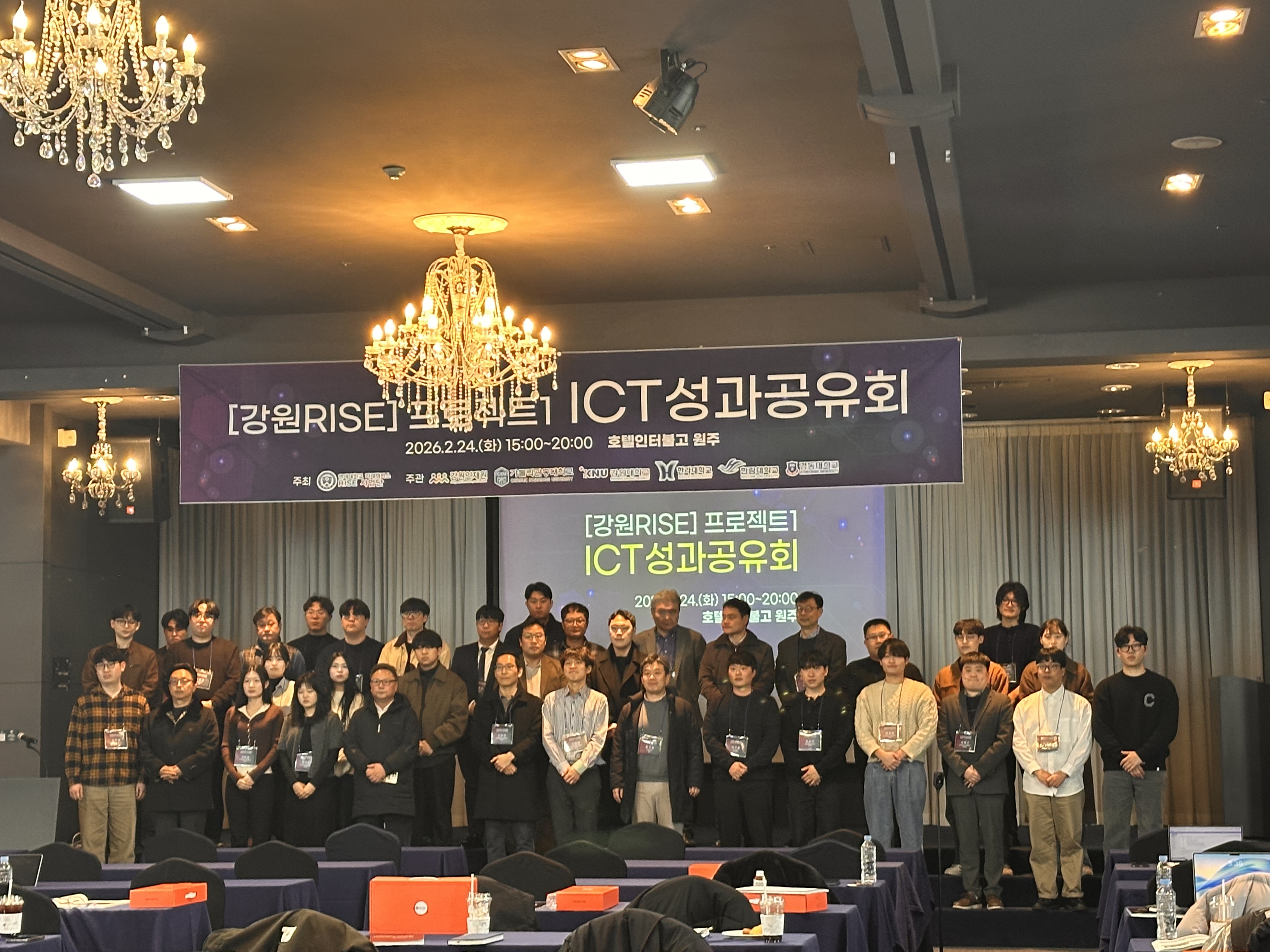 지난 2월 24일, 원주 인터불고 호텔에서 개최된 강원 RISE 사업단 성과공유회에 우리 학부의 RISE 반도체분과 사업단와 RISE ICT분과 사업단이 참석하여 1차년도 주요 성과를 공유했습니다.