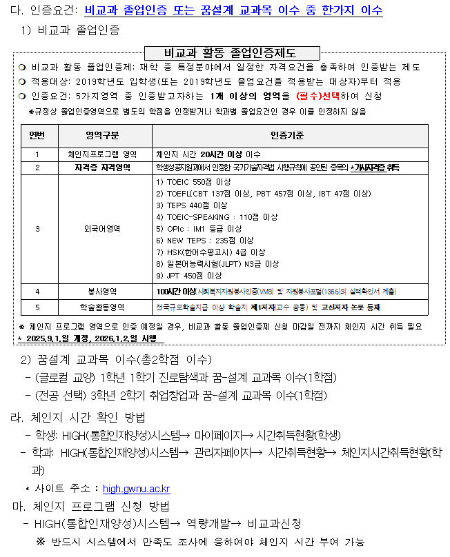 2026학년도 비교과 활동 졸업인증제 시행 알림