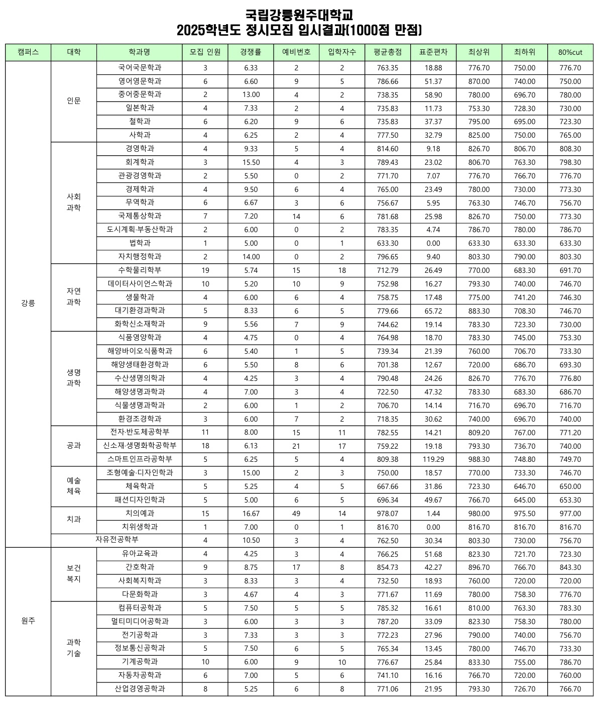 2025학년도 정시모집 경쟁률 및 성적안내(1000점만점):  2025학년도 산출 자료.pdf 다운로드