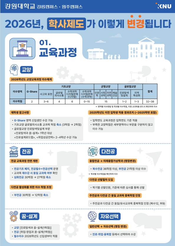 통합 강원대학교 교육과정 및 학사제도 안내 인포그래픽 배포