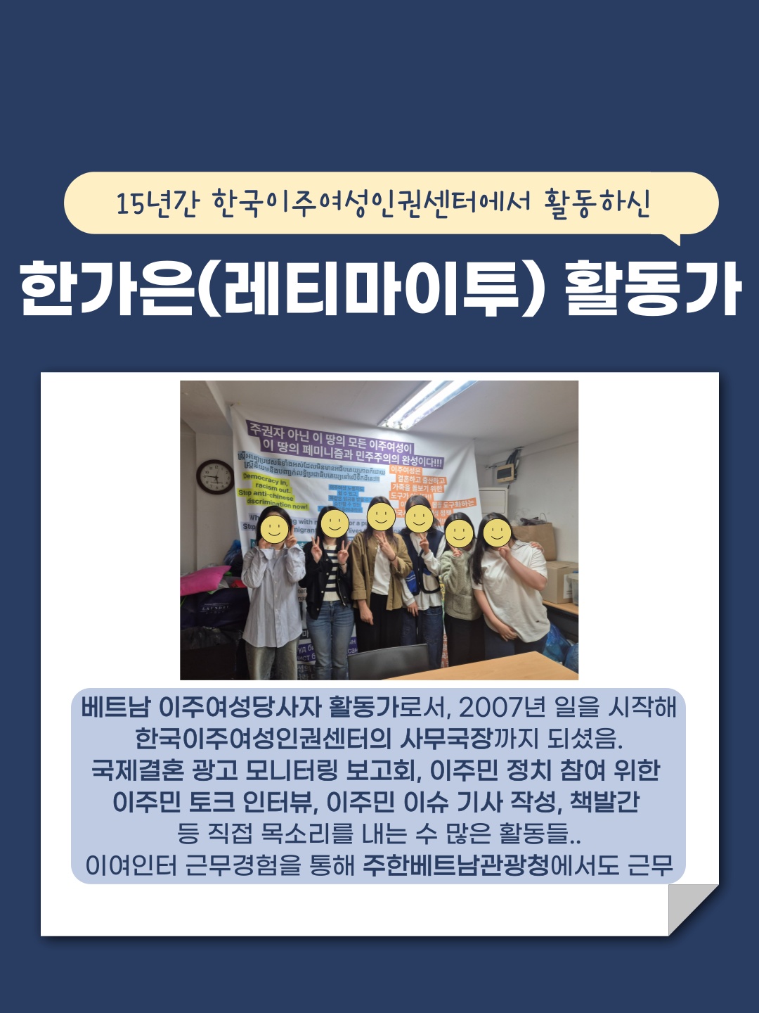 실습을 이주 인권 현장에서 하지 않는다면, 직접 경험하기 어려운 기회이니 모두 눈여겨 보시면 좋겠습니다 :)