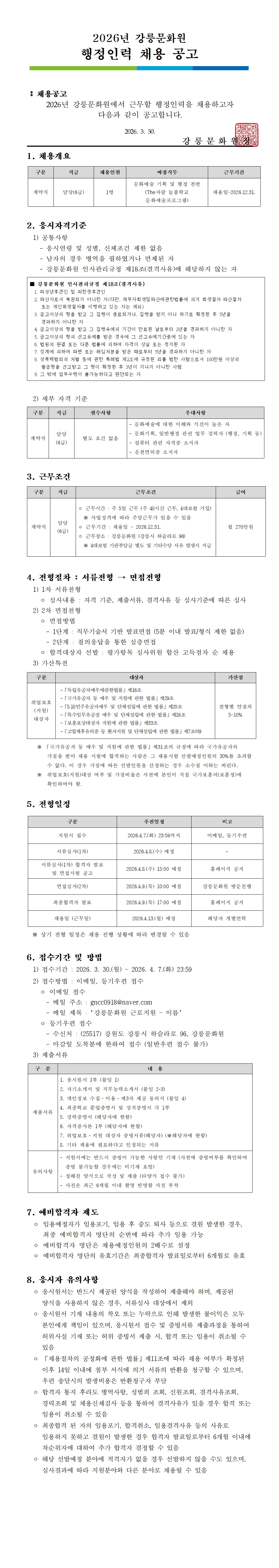 [강릉문화원] 2026 행정인력 공개채용