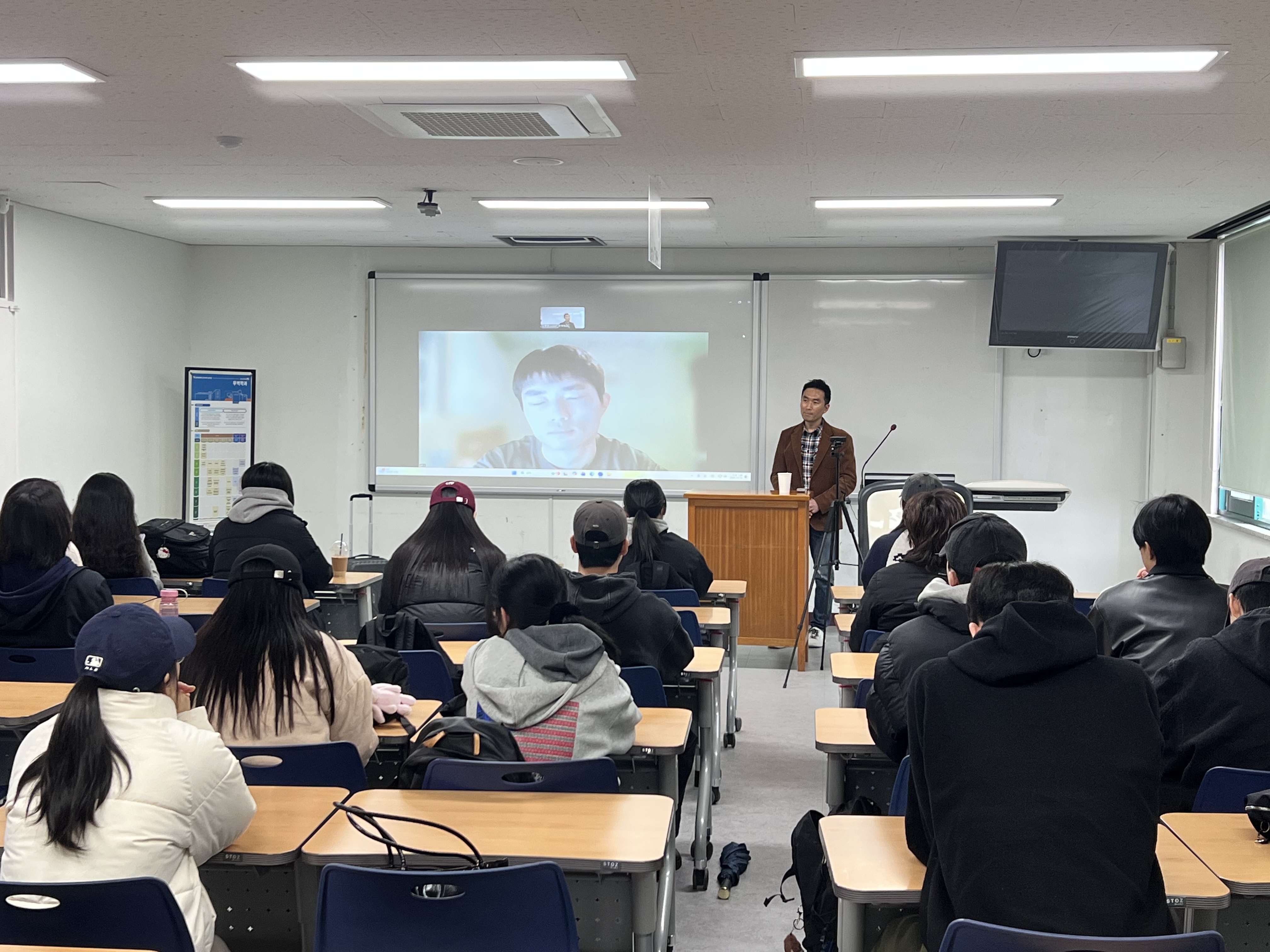 또한 이번 설명회에서는 현재 미국 현지에서 인턴십에 참여하고 있는 무역학과 재학생이 Zoom을 통해 온라인으로 연결되어 인턴십 경험과 현지 근무 환경에 대한 후기를 공유하는 시간도 마련되었다. 해당 학생은 미국 무역·물류기업에서의 실제 업무 경험, 현지 생활, 인턴십 준비 과정 등에 대해 설명하며 해외 인턴십을 준비하는 후배들에게 실질적인 조언을 전달하였다.
