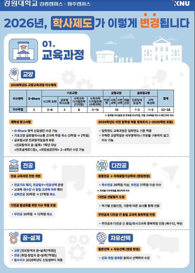 fnctId=bbs,fnctNo=596 [공지]2026년 통합 강원대학교 교육과정및 학사제도 안내 작성일 2026.02.27 작성자 최수진 조회수 714 첨부파일 2026년 통합 강원대학교 교육과정및 학사제도 안내.pdf